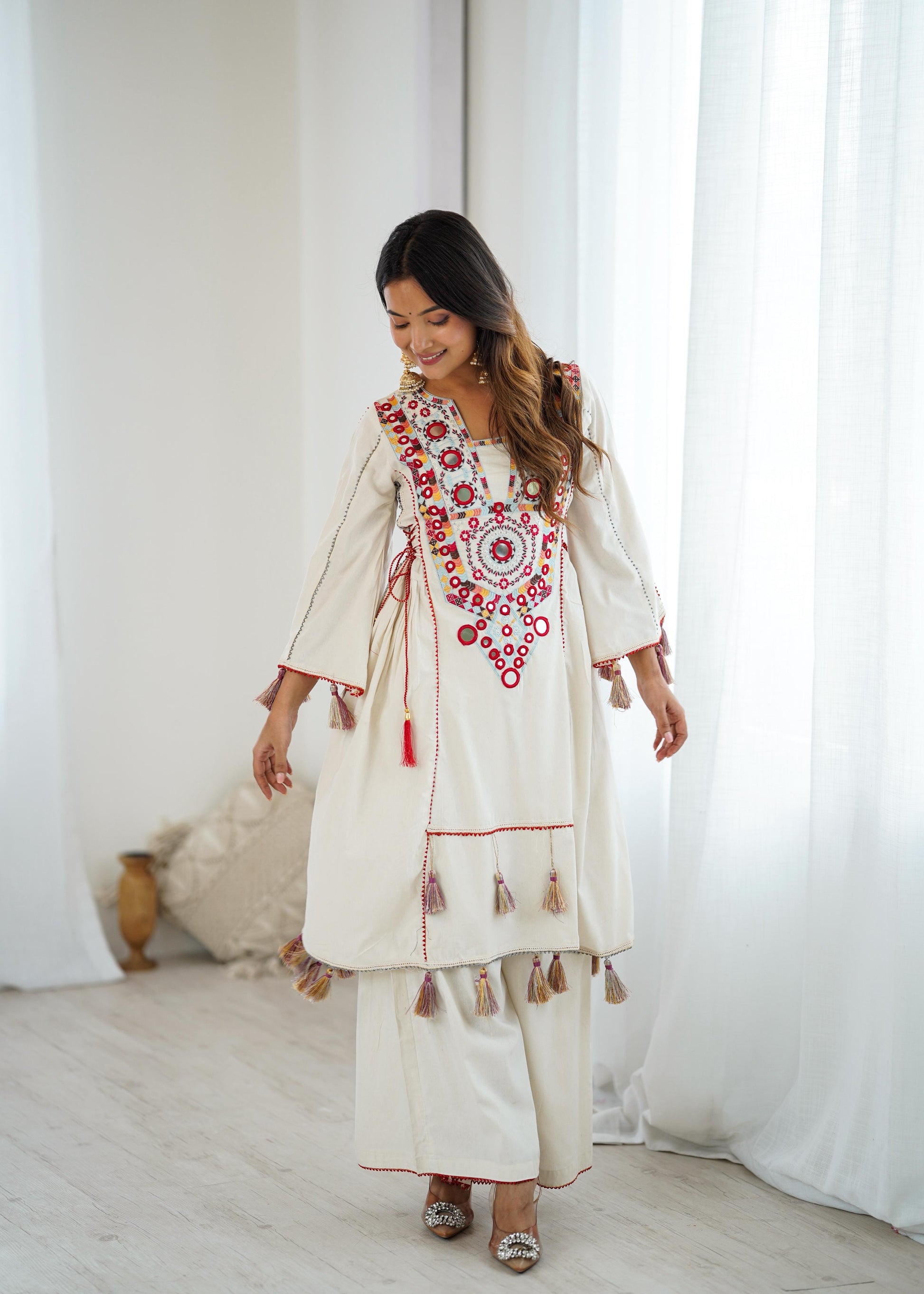 Pure Khadi Cottan With Embroidery Sequence Work With Real Mirror Work💐📌