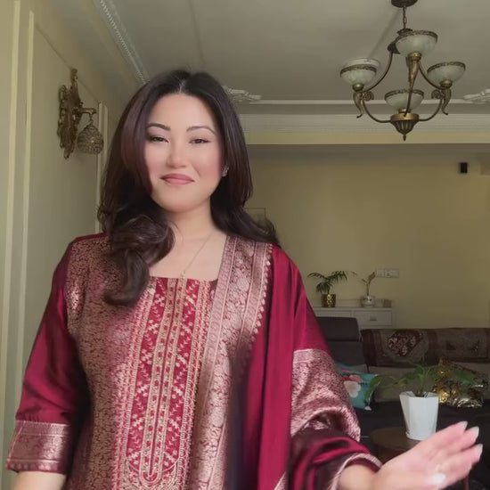 Beautiful Suit Sets in pure Banarasi Suit Set Top pent with duppta with jcard wiving