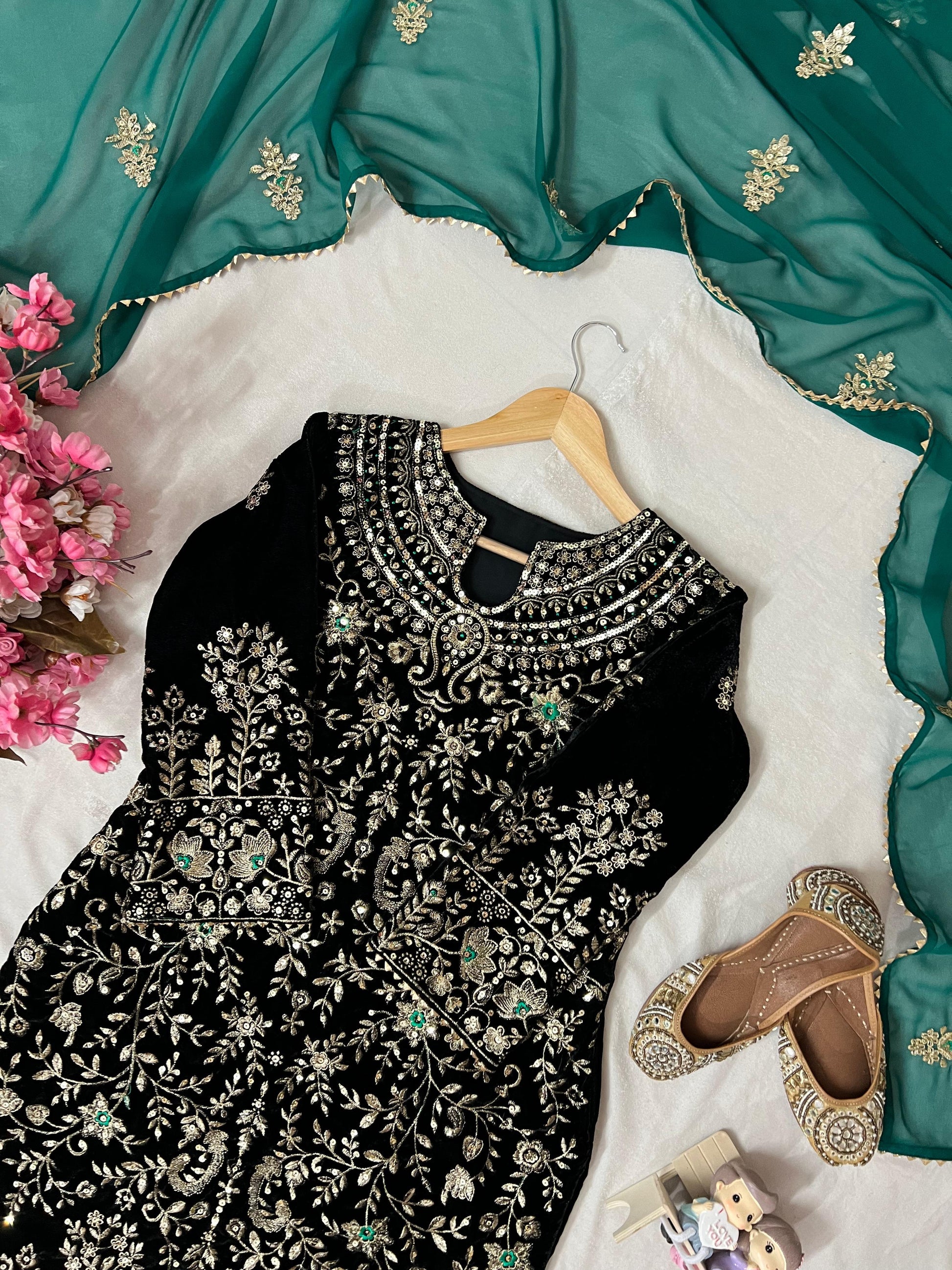 ENHANCE THE BEAUTY OF YOUR WARDROBE WITH THIS NEWLY LAUNCHED VELVET KURTI-PLAZZO SET