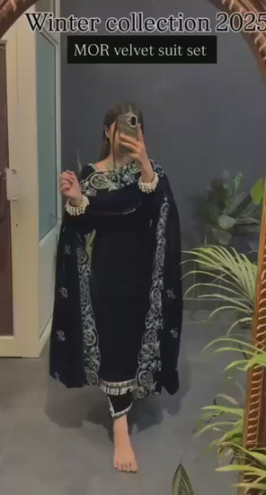 💃Top Length : 41-42 Inches💃Pant fabric :Pure Heavy Viscous Velvet With Heavy Embroidery Coding Sequence Work (FullyStitched)