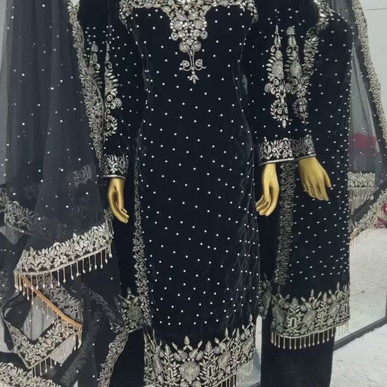 👗 Top Fabric :Pure Heavy Viscose Velvet With Heavy Embroidery Sequence Work neck moti work With Full Sleeves